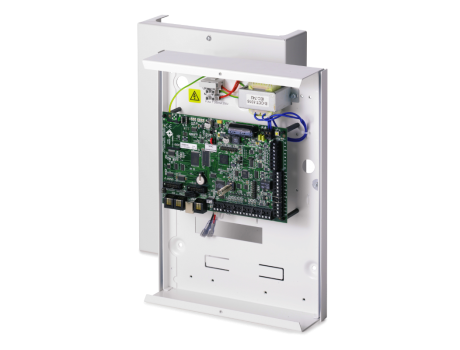 Centrala posiada wbudowany Web Serwer. Obudowa umożliwia montaż poza płytą główną centrali, akumulatora 12V/7Ah oraz jednego modułu rozszerzeń.