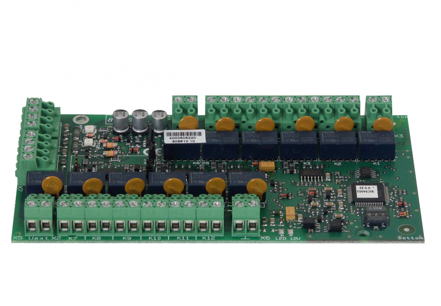 Moduł EBK 12R to moduł sterujący, który posiada 12 swobodnie programowalnych przekaźników. Przeznaczony jest do rozbudowy central ESSER, w celu zwiększenia ich możliwości. Moduł zapewnia lokalne sterowanie oraz monitorowanie funkcji zabezpieczeń, takich jak sterowanie drzwi pożarowych, systemów wentylacji i automatyki budynku. Sterowanie i obsługa każdego wyjścia modułu 12R może być realizowana w całej sieci essernet® z poziomu innych central sygnalizacji pożaru.