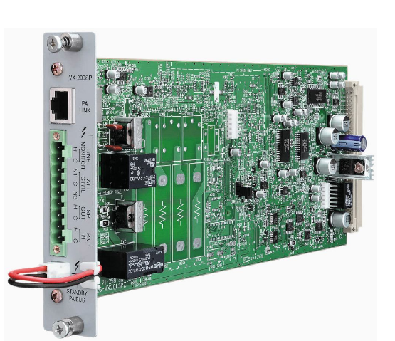 VX-200SP-2 to moduł wyjściowego sygnału audio systemu VX-2000 z wykrywaniem tonu pilotującego linii głośnikowej. Moduł przeznaczony jest do montażu w jednostce kontroli VX-2000SF i wykrywa zwarcia linii głośnikowej, otwarte obwody poprzez monitorowanie przerw rezystancji modułu końca linii oraz zwarcia doziemne. Podłączenie modułu końca linii do końca linii głośnikowej eliminuje konieczność wykorzystywania linii głośnikowej do monitorowania linii. Jednak kabel musi być ekranowany.