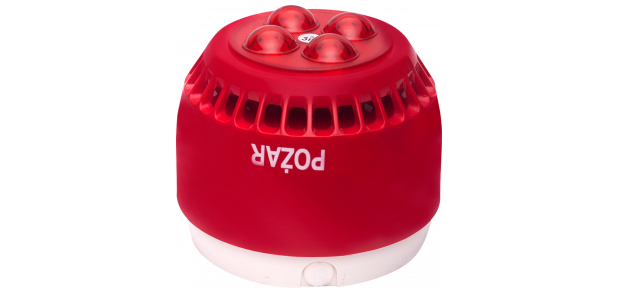 Sygnalizator akustyczno-optyczny SA-K7N sygnalizuje wystąpienie zagrożenia pożarowego wewnątrz budynków.