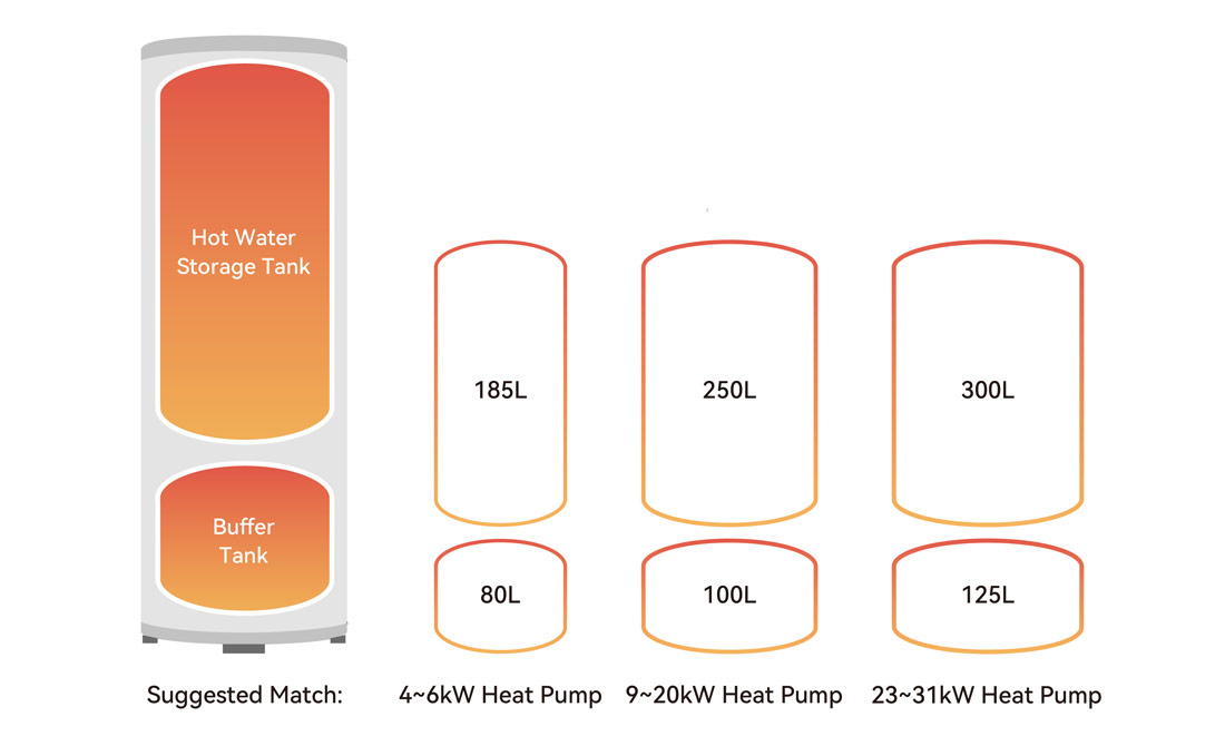 Zestaw pompa ciepła powietrze-woda z serii Flamingo + zbiornik kombinowany: CWU 250L (w tym zbiornik buforowy 100 L).